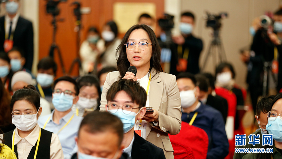 10月19日(星期三)15:00,二十大新闻中心在梅地亚新闻中心二层新闻发布厅举办第三场集体采访。图为经济日报记者在分会场提问。(新华网 陈杰 摄)