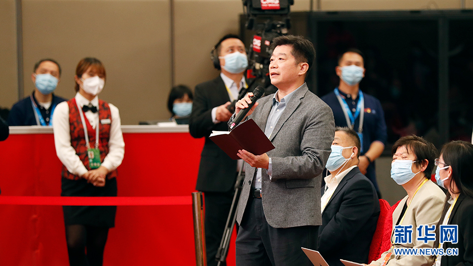 10月19日(星期三)15:00,二十大新闻中心在梅地亚新闻中心二层新闻发布厅举办第三场集体采访。图为香港商报记者在分会场提问。(新华网 陈杰 摄)