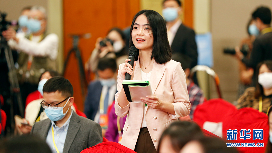 10月19日(星期三)15:00,二十大新闻中心在梅地亚新闻中心二层新闻发布厅举办第三场集体采访。图为人民日报记者在分会场提问。(新华网 陈杰 摄)