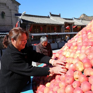 10月17日,河北阜平县骆驼湾村村民在整理苹果。新华社记者 骆学峰 摄
