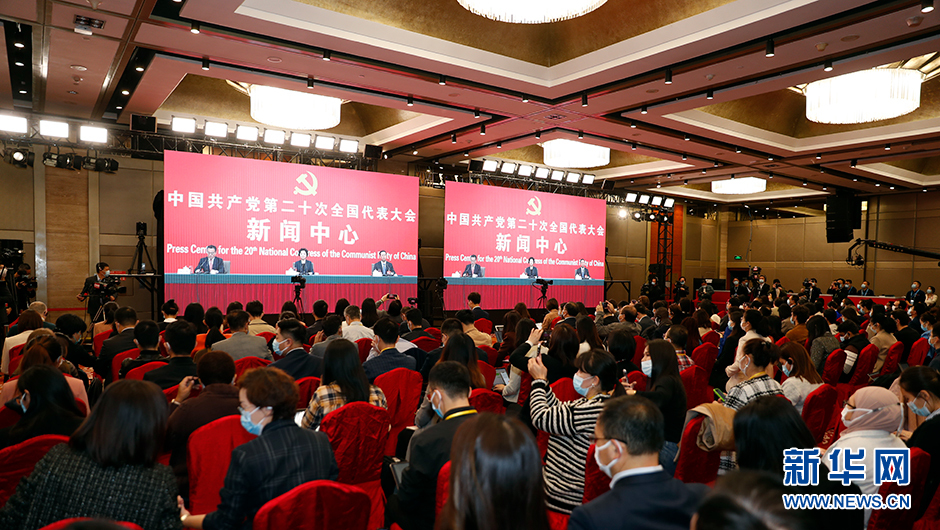 10月20日(星期四)10:00,二十大新闻中心在梅地亚新闻中心二层新闻发布厅举办第四场记者招待会。图为记者招待会分会场现场。(新华网 陈杰 摄)