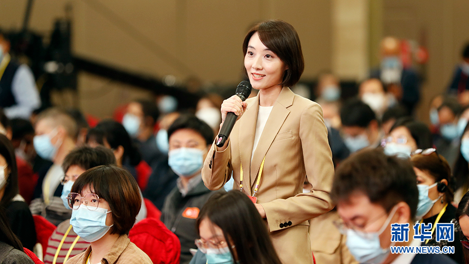 10月20日(星期四)10:00,二十大新闻中心在梅地亚新闻中心二层新闻发布厅举办第四场记者招待会。图为中央广播电视总台记者在分会场提问。(新华网 陈杰 摄)