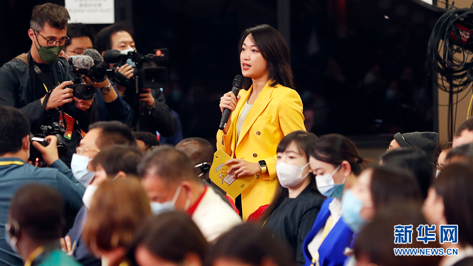 10月20日(星期四)10:00,二十大新闻中心在梅地亚新闻中心二层新闻发布厅举办第四场记者招待会。图为中央广播电视总台CGTN记者在分会场提问。(新华网 陈杰 摄)