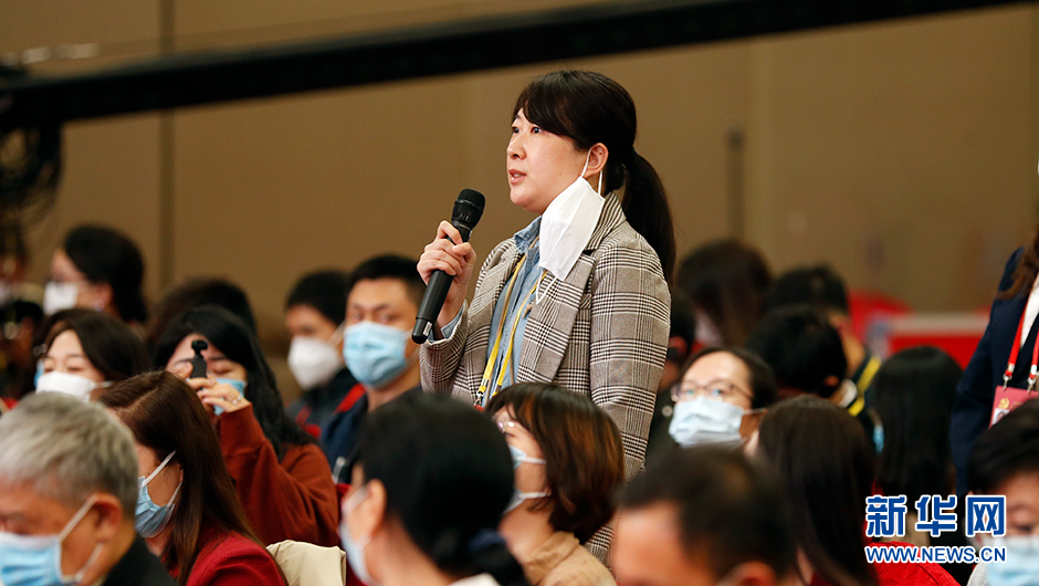 10月20日(星期四)19:30,二十大新闻中心在梅地亚新闻中心二层新闻发布厅举办第五场集体采访。图为中国银行保险报记者在分会场提问。(新华网 陈杰 摄)