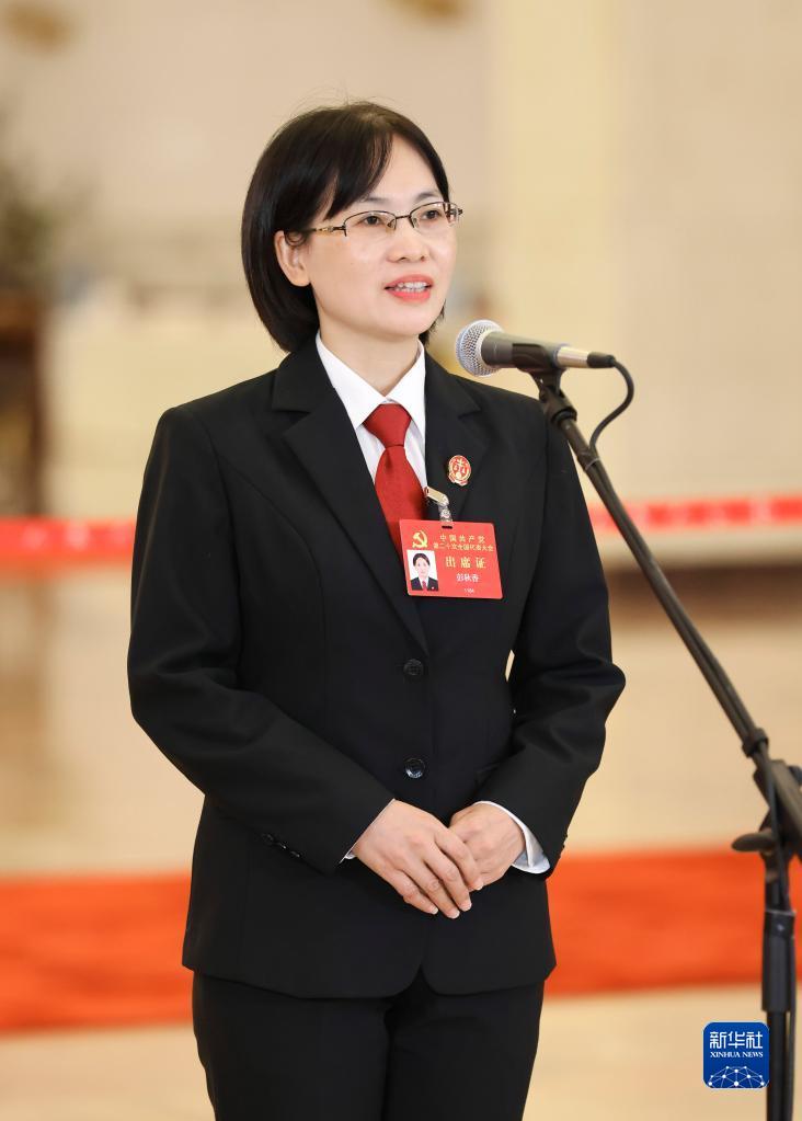 这是闭幕会后,彭秋香代表接受采访。