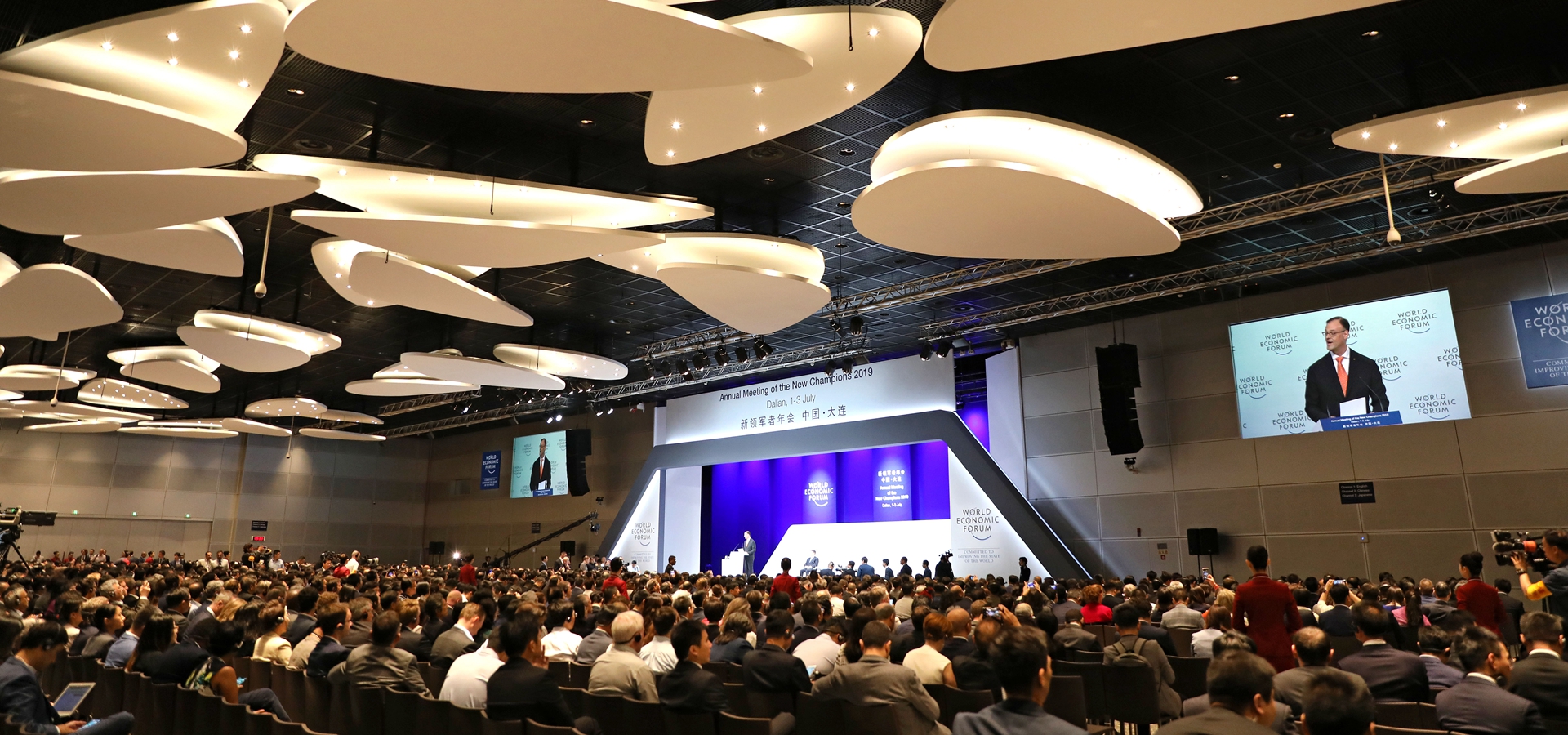 国务院总理李克强2日下午在大连同出席2019年夏季达沃斯论坛的国际工商、金融、智库、媒体界代表举行对话会。