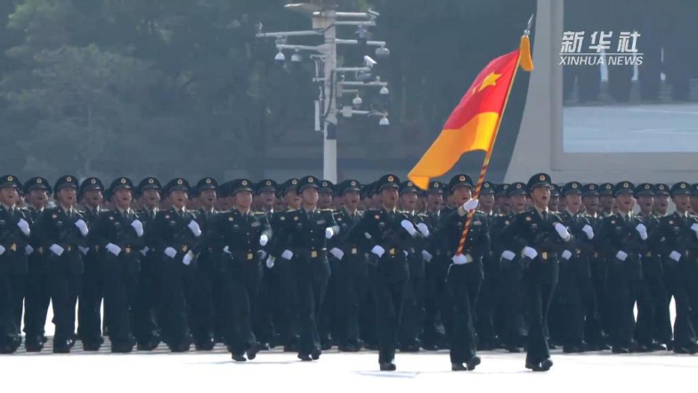 联合军乐团奏响《义勇军进行曲》 五星红旗冉冉升起