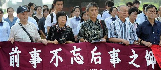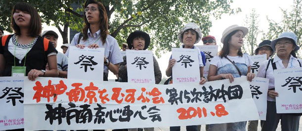 8月15日,神户·南京心连心会第15次访华团成员参加南京国际和平集会