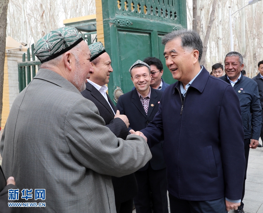 中共中央政治局常委、全国政协主席汪洋近日在新疆调研。这是3月21日,汪洋在喀什市艾提尕尔清真寺进行调研。 新华社记者刘卫兵摄