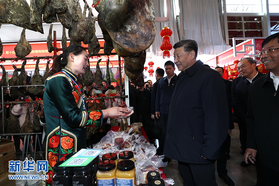 1月19日至21日,中共中央总书记、国家主席、中央军委主席习近平来到云南,看望慰问各族干部群众,向全国人民致以新春祝福。这是20日下午,习近平在昆明新春购物博览会年货街,了解春节前市场供应情况。 新华社记者 鞠鹏 摄