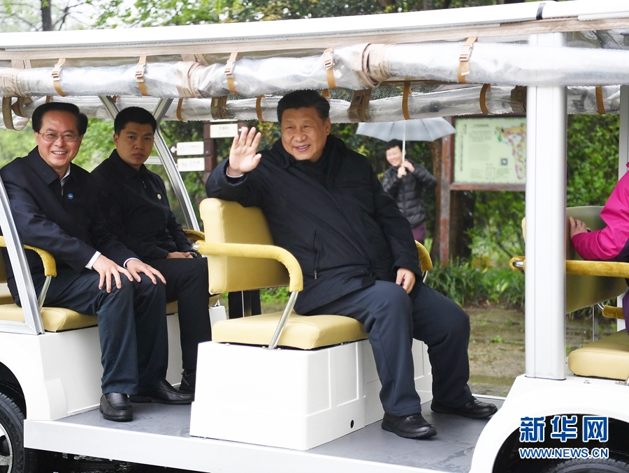 3月31日,中共中央总书记、国家主席、中央军委主席习近平在杭州考察。这是习近平在西溪国家湿地公园就西溪湿地保护利用情况进行考察调研。 新华社记者 燕雁 摄