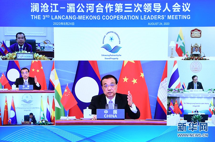 8月24日,国务院总理李克强在北京人民大会堂出席澜沧江-湄公河合作第三次领导人视频会议。李克强和老挝总理通伦共同主持会议。柬埔寨首相洪森、缅甸总统温敏、泰国总理巴育、越南总理阮春福出席。 新华社记者 饶爱民 摄