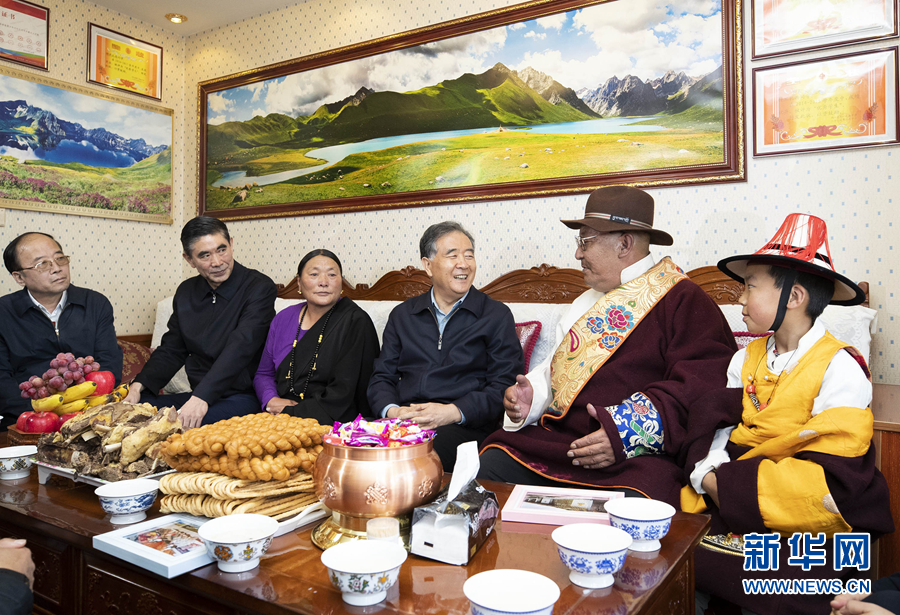 中共中央政治局常委、全国政协主席汪洋近日在青海调研。这是9月14日,汪洋在果洛藏族自治州玛沁县大武镇久美家园易地扶贫搬迁安置点牧民家中看望。 新华社记者 黄敬文 摄