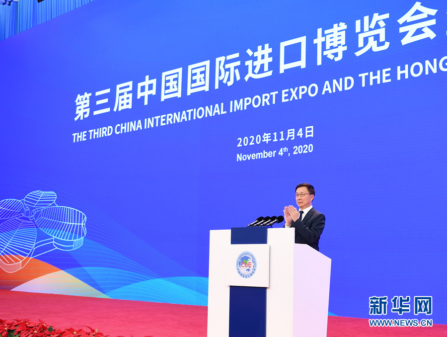 新华社上海11月5日电 中共中央政治局常委、国务院副总理韩正4日在上海出席第三届中国国际进口博览会开幕式。