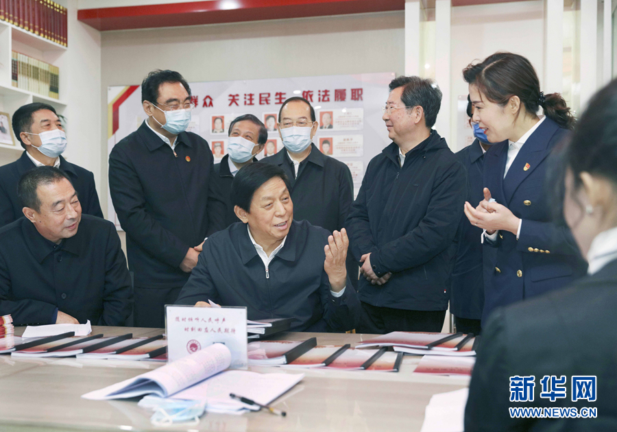 11月16日至18日,中共中央政治局常委、全国人大常委会委员长栗战书在山西调研。这是11月17日,栗战书在长治一处街道人大机关考察。新华社记者 刘卫兵 摄