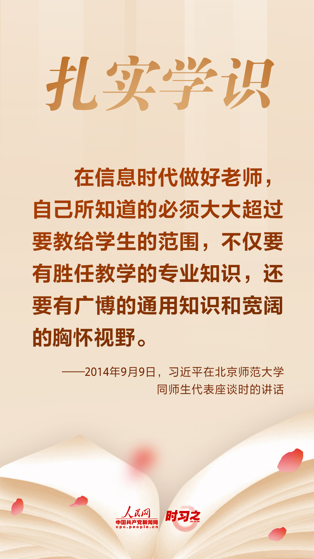 三寸粉笔,三尺讲台系国运;一颗丹心,一生秉烛铸民魂。习近平高度重视教育改革和教师工作,多次表达对全国教师的关怀勉励。教师是立教之本、兴教之源。好老师什么样?习近平提出殷切期望。
