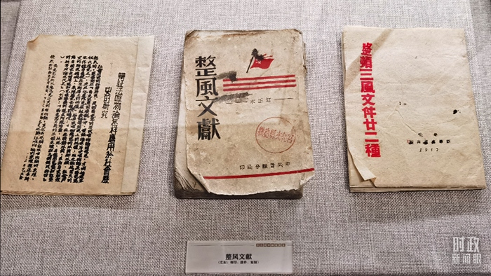 △中共绥德地委旧址专题展陈,从左至右分别是整风文献的刻印版、原件和复制版。(总台央视记者马立飞拍摄)