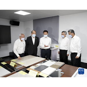 9月17日上午,横琴粤澳深度合作区管理机构揭牌仪式在广东珠海举行。中共中央政治局常委、国务院副总理、粤港澳大湾区建设领导小组组长韩正出席揭牌仪式并讲话。这是揭牌仪式结束后,韩正来到横琴澳门新街坊项目考察。新华社记者 丁海涛 摄