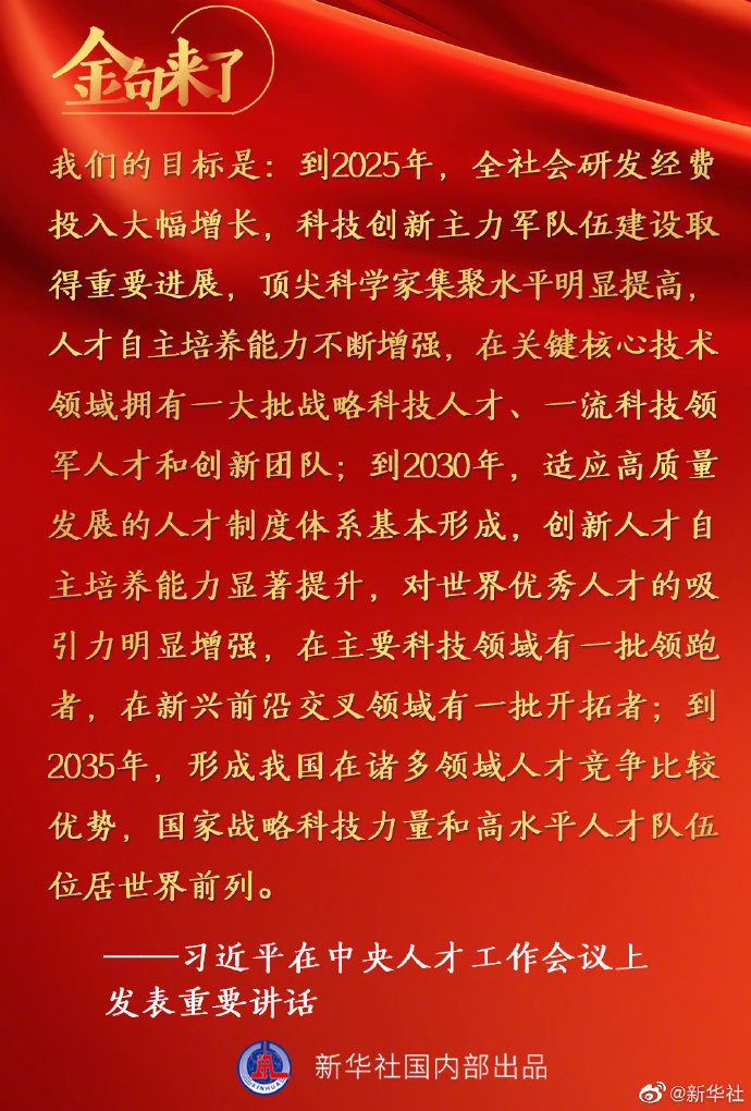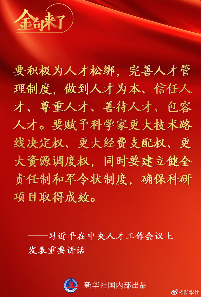 金句来了!习近平在中央人才工作会议上的重要讲话