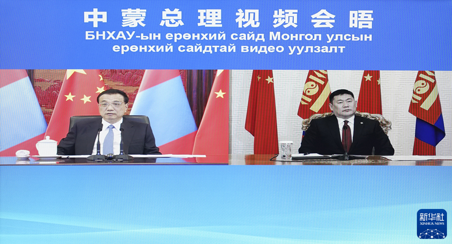 李克强表示,中蒙是山水相连的邻邦。两国关系发展良好,务实合作持续推进。今年7月,习近平主席同呼日勒苏赫总统通话,就深化中蒙关系发展达成重要共识。当前两国都面临抗击疫情、发展经济、保障民生的任务。双方加强合作对两国、对地区都有利。