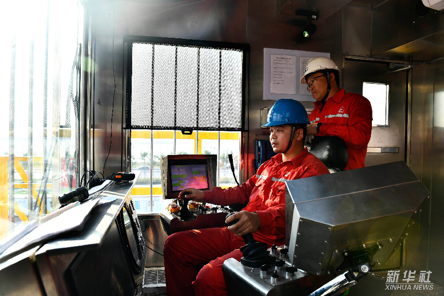 中国石化胜利石油工程公司黄河钻井总公司70183钻井队的工作人员在操控钻机集成控制装置(10月18日摄)。