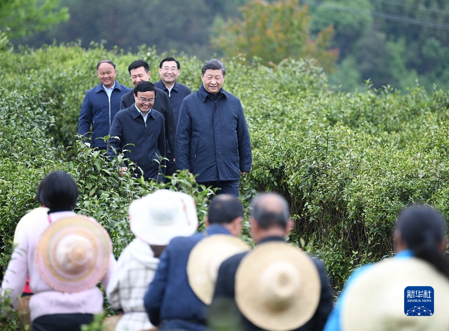 2020年4月20日至23日,习近平在陕西考察。这是4月21日,习近平来到安康市平利县老县镇,在茶园考察脱贫攻坚情况。