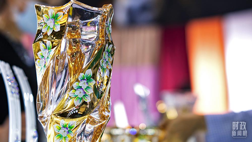△2021年中国服贸会,孟加拉国展台展示的一款玻璃花瓶。(图/视觉中国)
