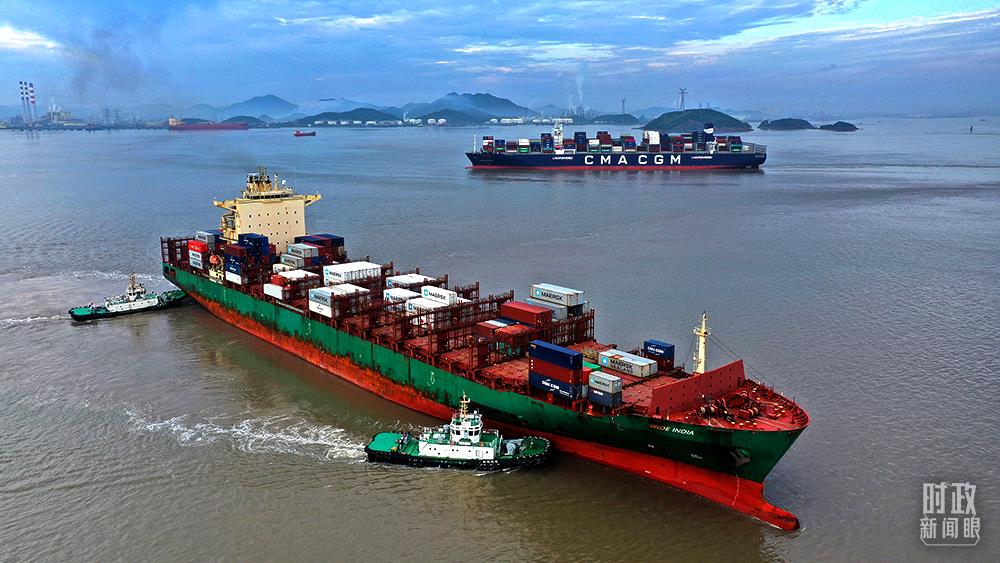 △2021年6月,浙江舟山港。轮载货物将被运往尼日利亚、马来西亚、新加坡等“一带一路”沿线国家。(图/视觉中国)