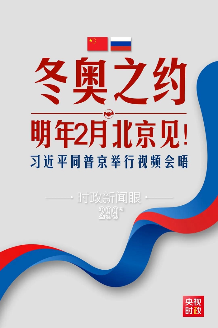习主席说:“再过一个多月,你将访华并出席北京冬奥会开幕式。我对我们的‘冬奥之约’十分期待,愿同你携手‘一起向未来’,共同开启后疫情时期中俄关系的崭新篇章。”