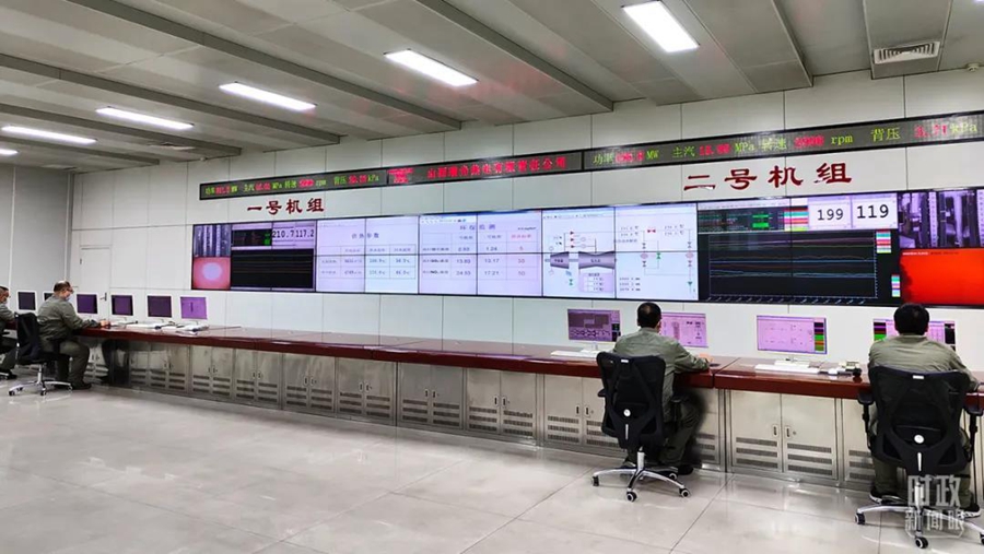 △瑞光公司的企业热电机组生产集中控制室。(总台央视记者杨立峰拍摄)