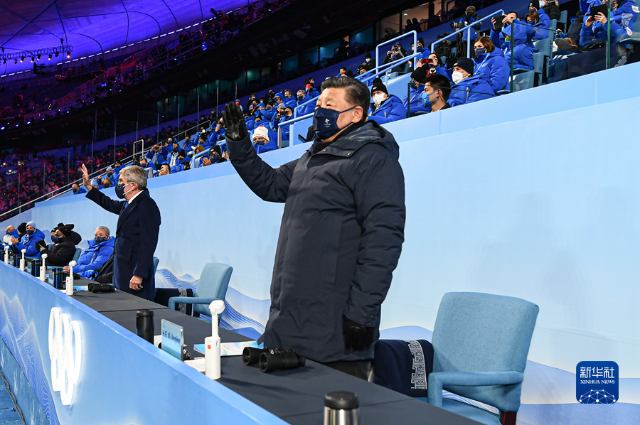 2月4日晚,中国国家主席习近平、国际奥委会主席巴赫出席北京第二十四届冬季奥林匹克运动会开幕式。新华社记者 谢环驰 摄
