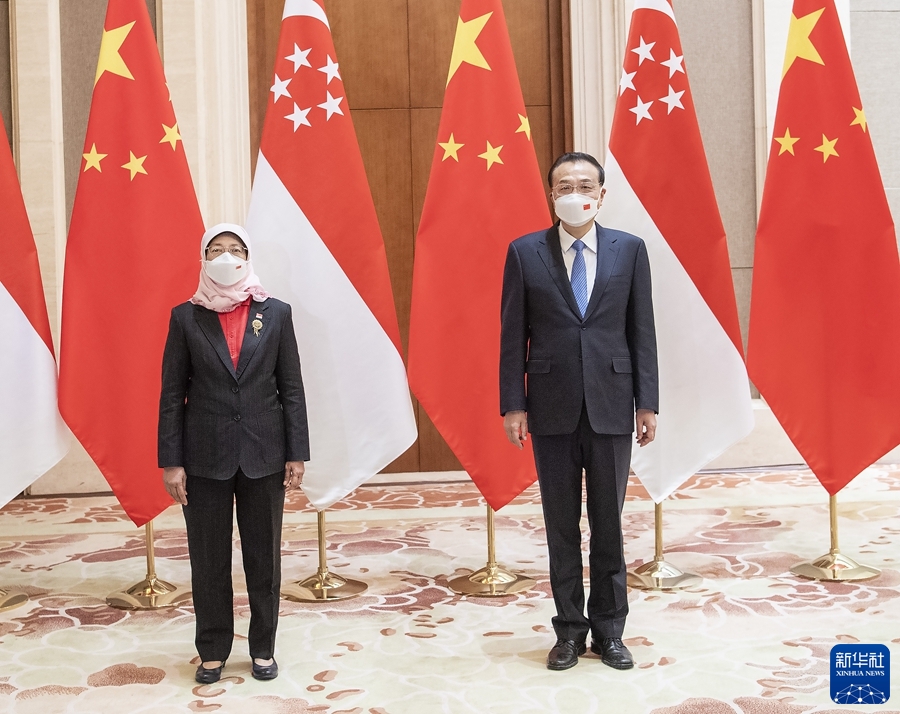 李克强表示,新加坡是中国在东盟的重要合作伙伴。面对疫情冲击和世界经济复苏分化,两国关系保持健康稳定发展,合作逆势而上,为增进两国人民福祉、维护国际和地区和平稳定发挥了积极作用。习近平主席明天将同总统女士会晤。中方高度重视发展同新加坡的关系,愿同新方保持高层交往,深化发展战略对接,推动“国际陆海贸易新通道”在交通物流、机制建设、国际合作等领域取得新的成果,加强在金融、抗疫、职业教育培训等多领域合作,更好造福两国和两国人民。