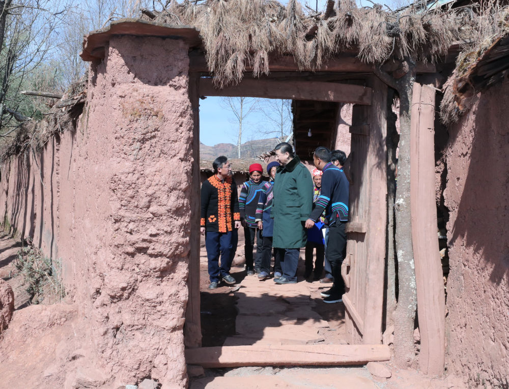 ↑2018年2月11日上午,习近平在凉山彝族自治州昭觉县三岔河乡三河村考察时同干部群众交谈。