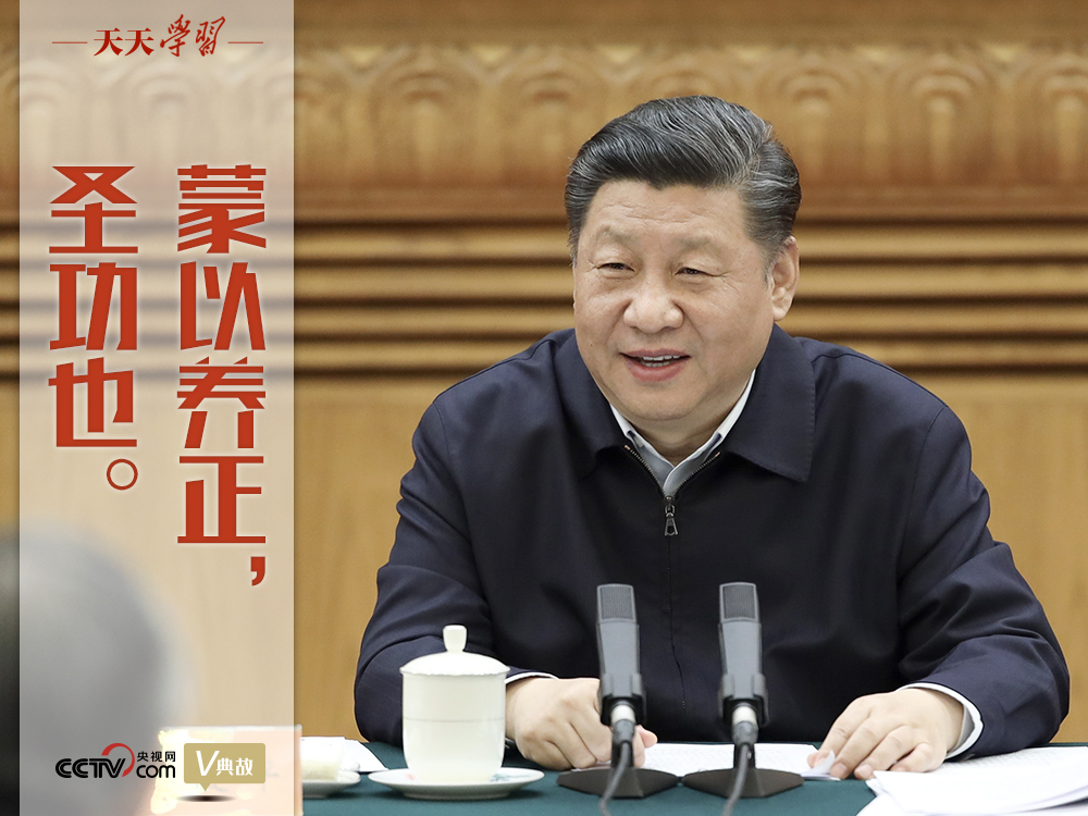 “蒙以养正,圣功也”出自《周易》蒙卦的彖辞。儿童出生后知识未开,对世界还懵懵懂懂,所以叫作“蒙童”。培养蒙童使之接受教育走上正道,成为对社会有用的人,这是圣人最伟大的功业。