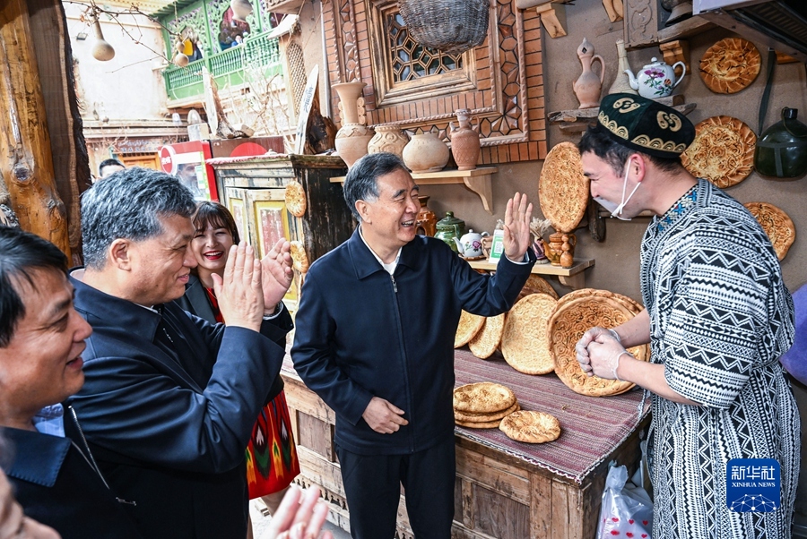 3月18日至22日,中共中央政治局常委、全国政协主席汪洋在新疆调研。这是3月20日,汪洋在喀什古城调研文旅融合促进就业情况。