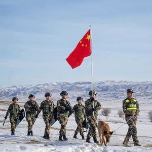 2022年1月31日,武警兵团总队执勤第五支队官兵在中哈边境巡逻 黄超摄 / 本刊