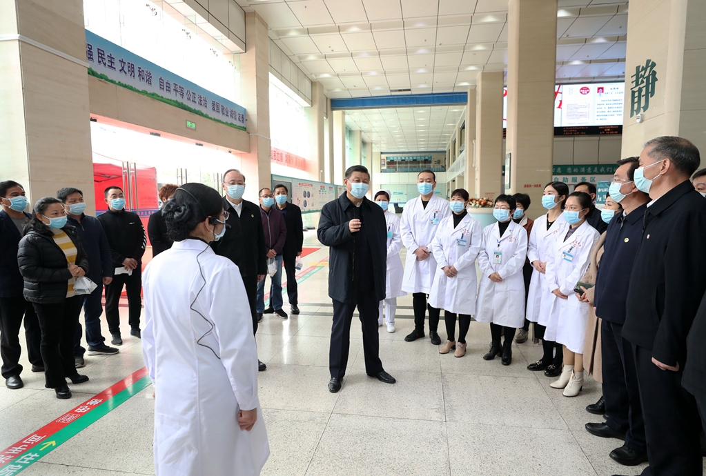 2021年3月23日,习近平总书记在福建省三明市沙县总医院住院楼一层大厅,同医护人员、患者亲切交流。
