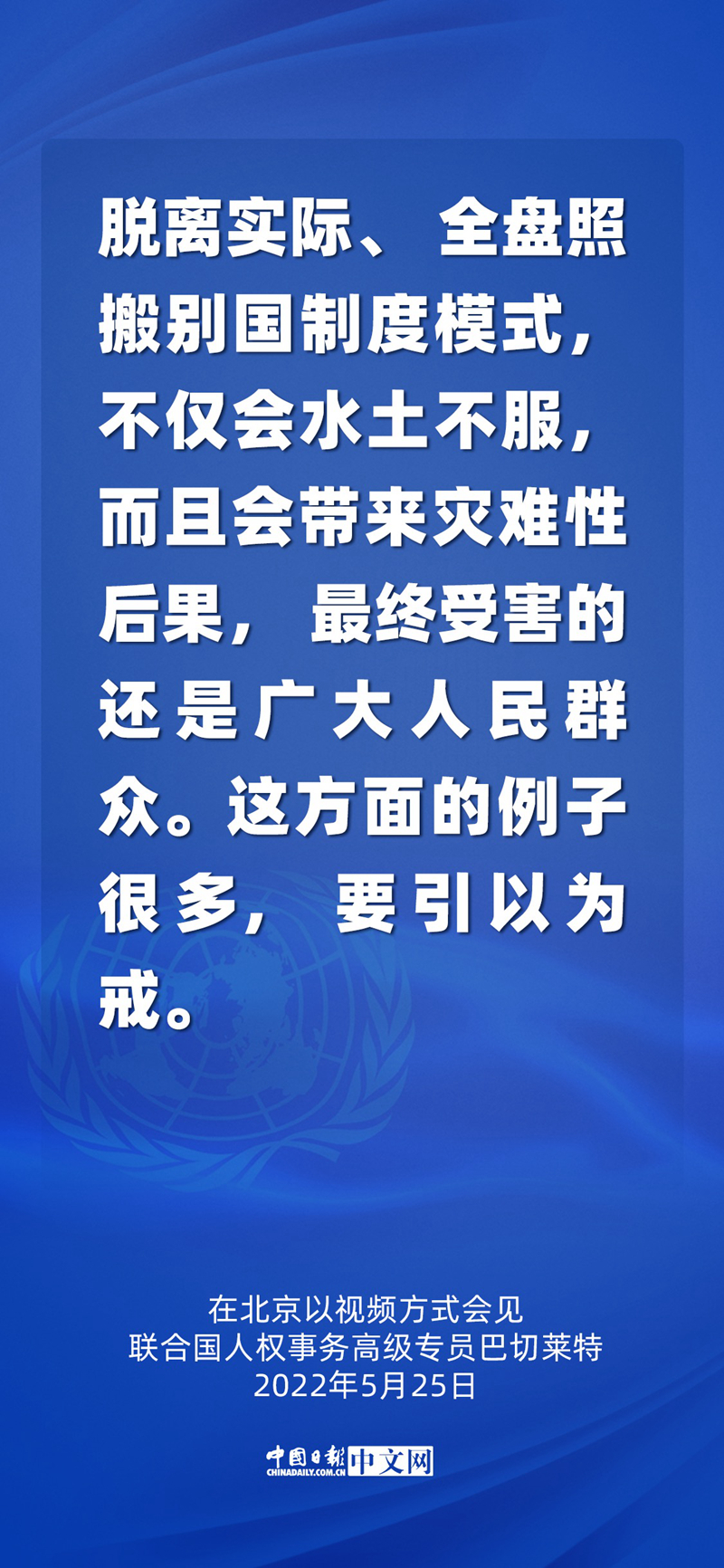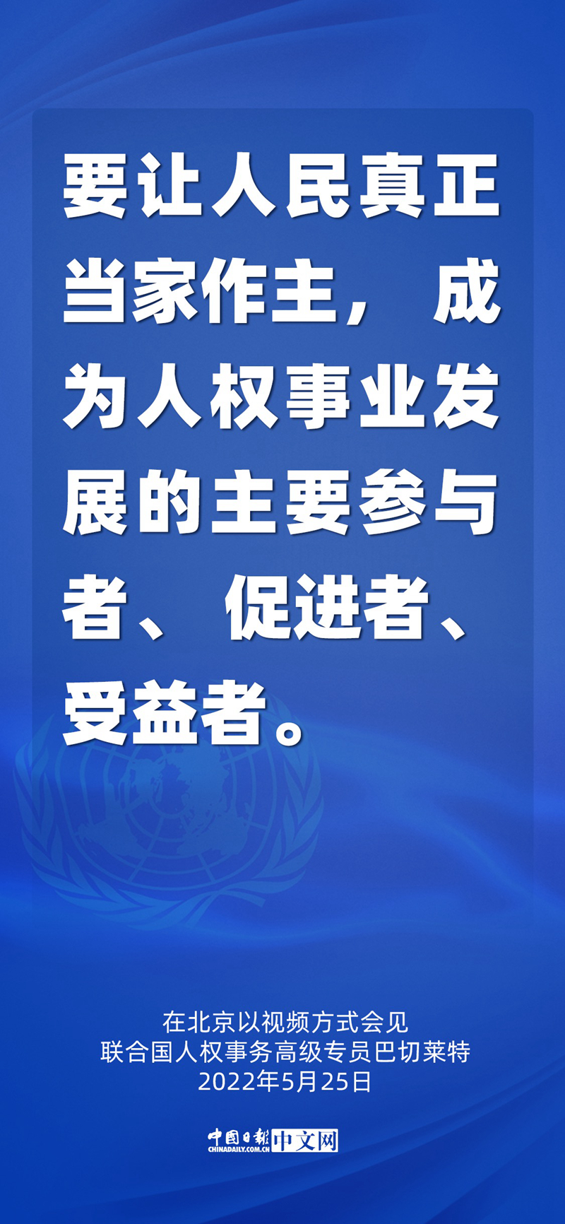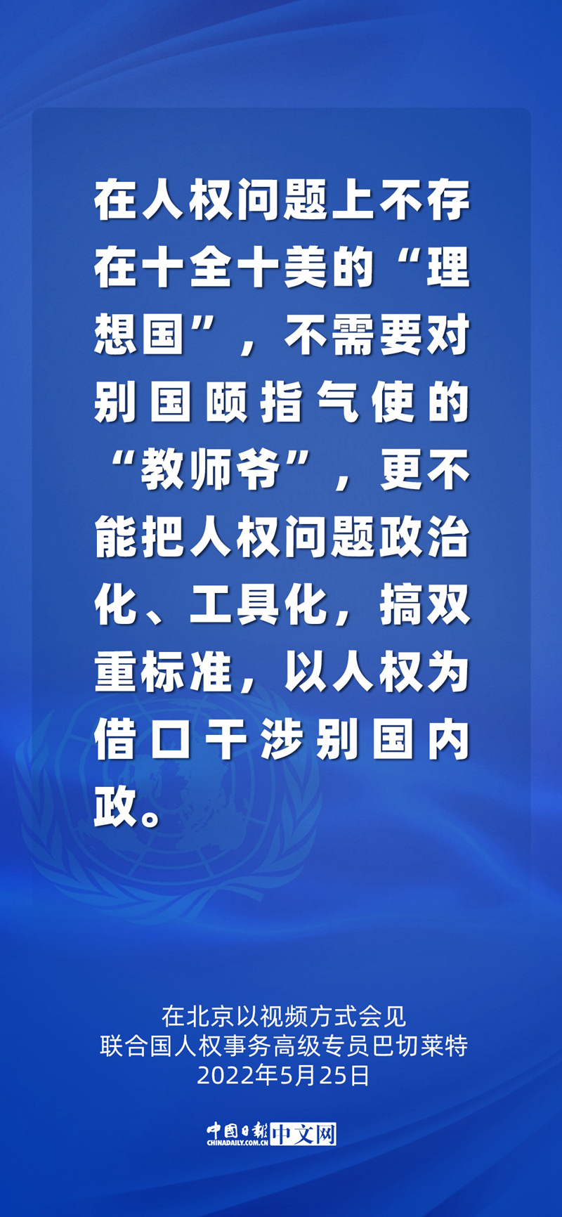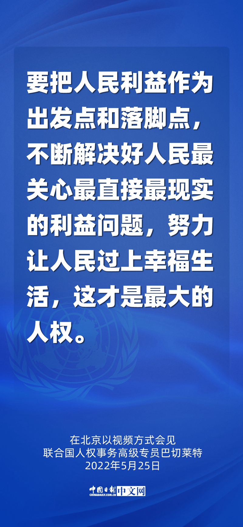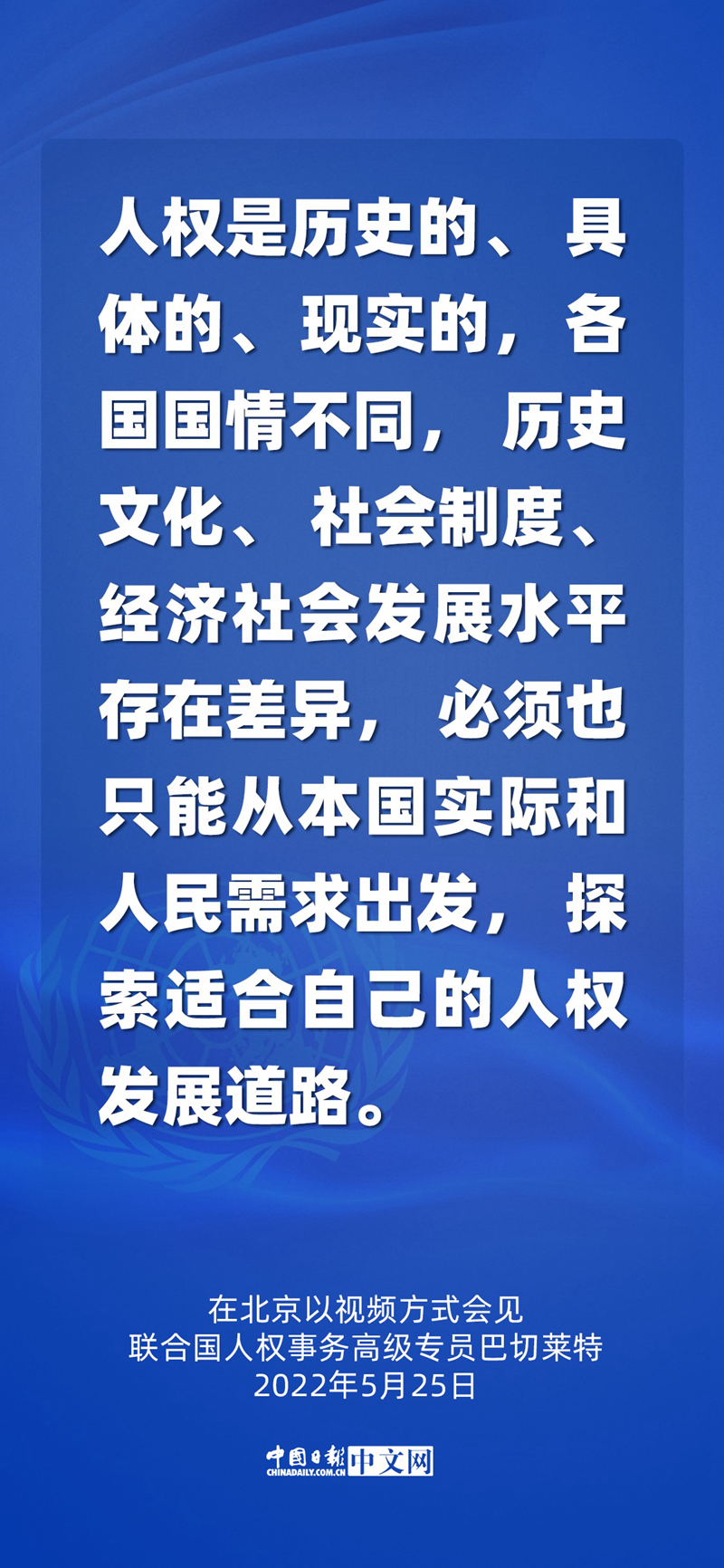 5月25日,国家主席习近平在北京以视频方式会见联合国人权事务高级专员巴切莱特。这是中国时隔17年再次接待人权高专访华。