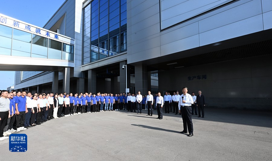 6月8日,中共中央总书记、国家主席、中央军委主席习近平在四川考察。这是8日下午,习近平在宜宾市极米光电有限公司车间外广场,同企业员工们亲切交流。新华社记者 李学仁 摄