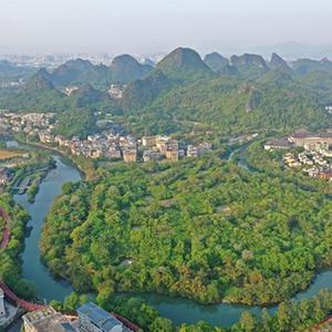 广西桂林市城区风光(4月10日摄,无人机照片)。新华社记者 周华 摄