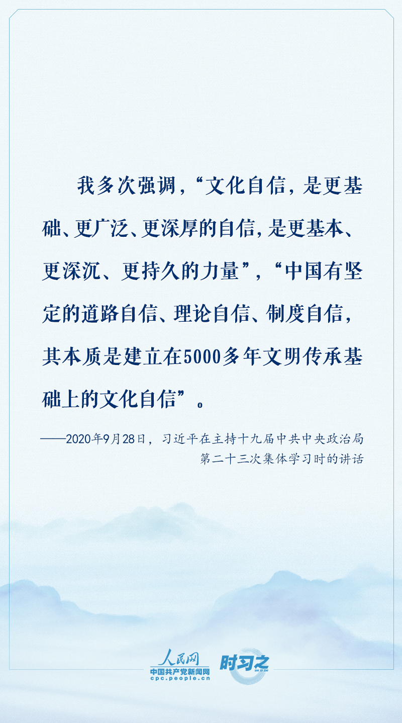 习近平总书记在主持中共中央政治局第三十九次集体学习时强调,“推动全党全社会增强历史自觉、坚定文化自信,坚定不移走中国特色社会主义道路,为全面建设社会主义现代化国家、实现中华民族伟大复兴而团结奋斗。”源浚者流长,根深者叶茂。习近平曾在多个场合反复强调增强历史自觉、坚定文化自信,为实现中华民族伟大复兴注入强大的精神动力。