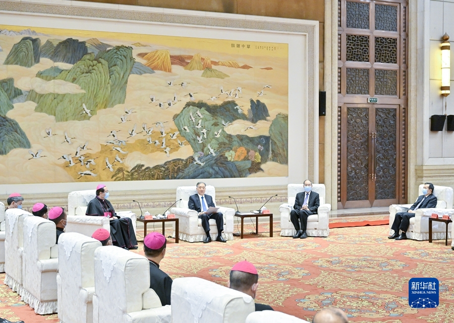 8月23日,中共中央政治局常委、全国政协主席汪洋在北京会见中国天主教爱国会、中国天主教主教团新一届领导班子成员。