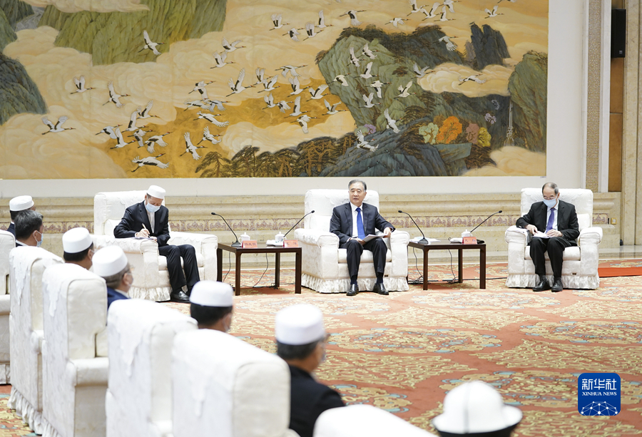 9月20日,中共中央政治局常委、全国政协主席汪洋在北京会见中国伊斯兰教协会新一届领导班子成员。新华社记者 燕雁 摄