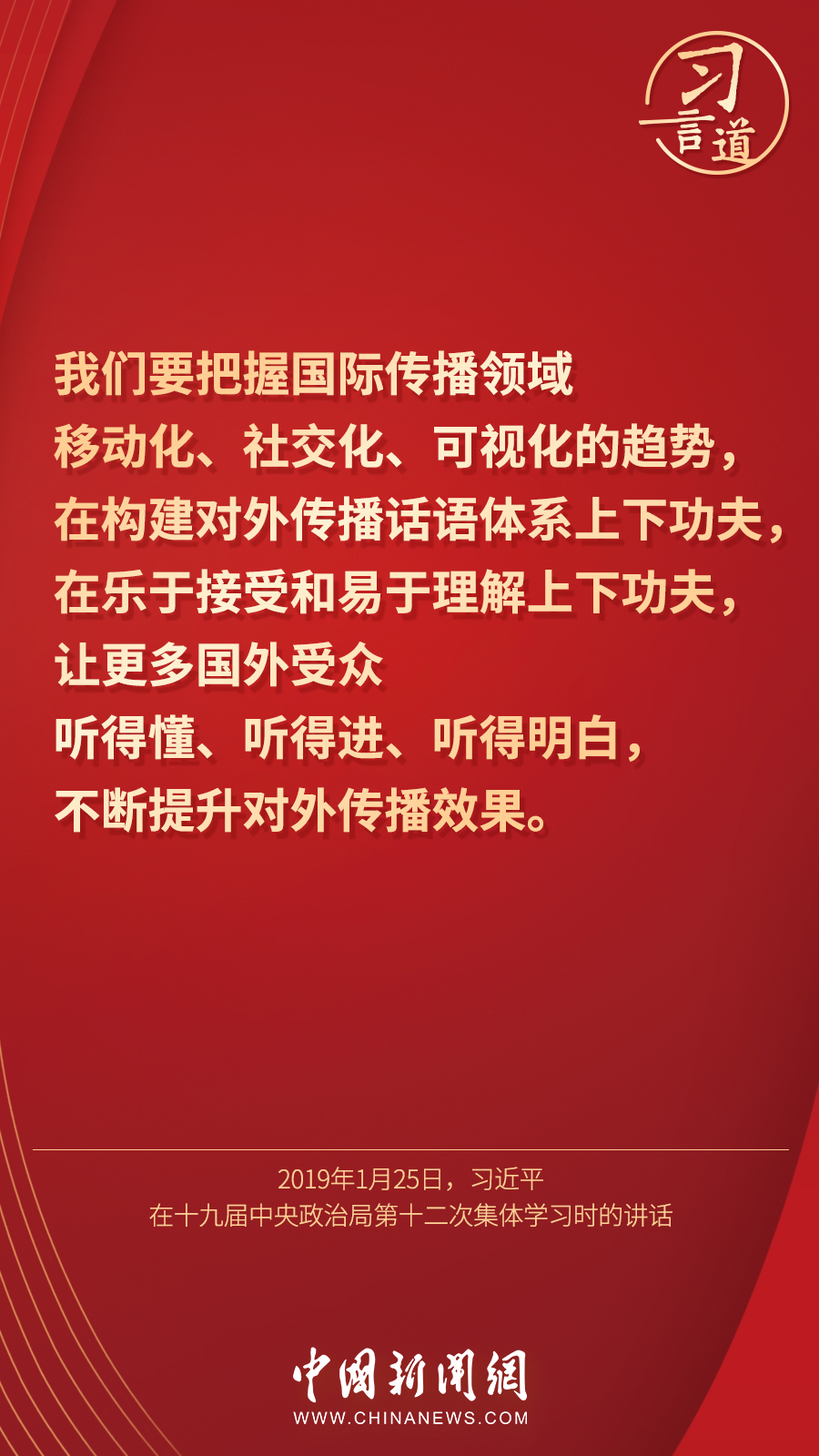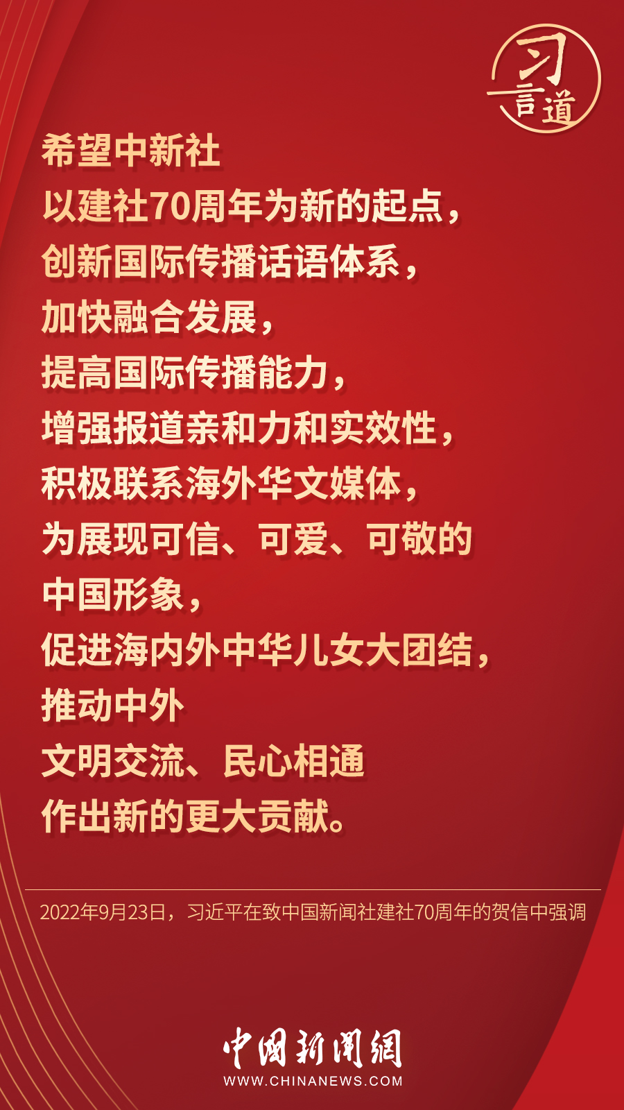 9月23日,习近平总书记在致中国新闻社建社70周年的贺信中强调,创新国际传播话语体系,加快融合发展,提高国际传播能力,增强报道亲和力和实效性。十八大以来,习近平高度重视我国国际传播能力建设,做出了一系列重要论述——