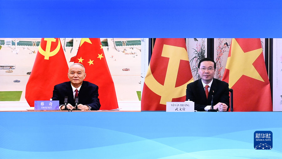新华社北京11月1日电 11月1日,中共中央政治局常委、中央书记处书记蔡奇在北京与陪同越共中央总书记阮富仲访华的越共中央政治局委员、中央书记处常务书记武文赏视频会晤。