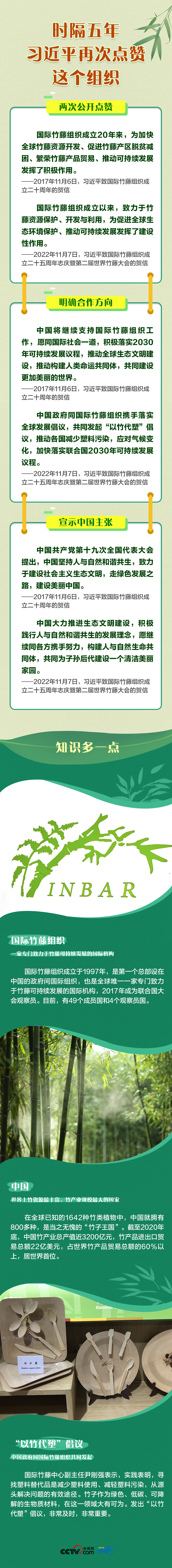 “国际竹藤组织成立以来,致力于竹藤资源保护、开发与利用,为促进全球生态环境保护、推动可持续发展发挥了建设性作用。”11月7日,国家主席习近平向国际竹藤组织成立二十五周年志庆暨第二届世界竹藤大会致贺信。