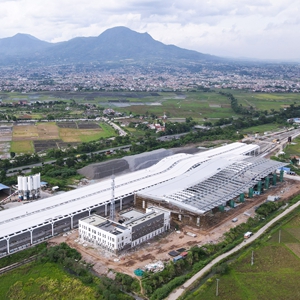 这是2022年10月27日在印度尼西亚万隆拍摄的建设中的雅万高铁德卡鲁尔车站(无人机照片)。新华社记者 徐钦 摄
