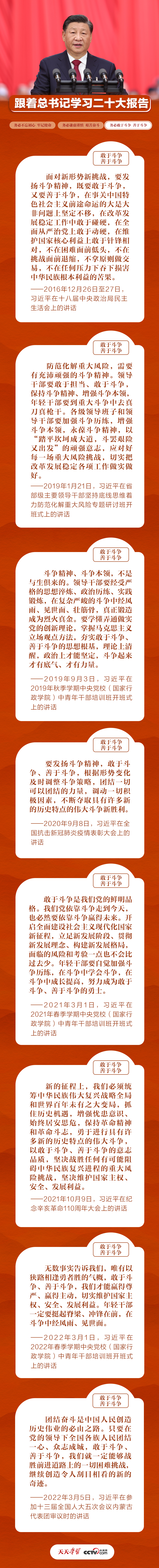 敢于斗争是战胜风险挑战的前提,善于斗争是战胜风险挑战的保障。党的十八大以来,习近平总书记在不同场合多次强调要“敢于斗争”“善于斗争”。今天,我们梳理部分有关重要论述,与您一同学习。