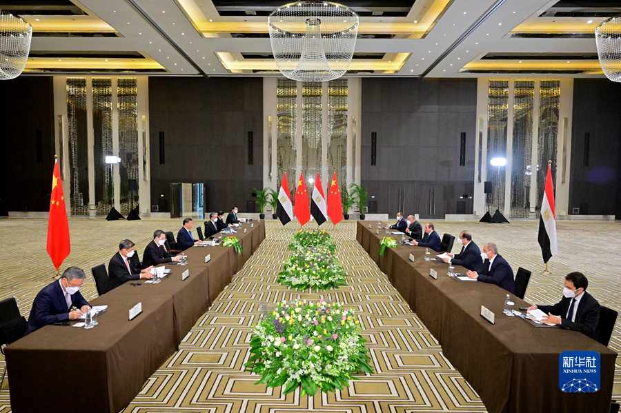 习近平强调,中方坚定支持埃及走符合自身国情的发展道路,坚定支持埃及维护国家主权、安全、发展利益,愿同埃方深化共建“一带一路”合作,推动如期高质量建成“斋月十日城”市郊铁路和新行政首都中央商务区,实施好“中埃苏伊士经贸合作区”等重大合作项目。中方愿从埃及进口更多优质产品,扩大投融资、疫苗联合生产、航天等领域合作。双方要推进鲁班工坊和中文教学,培养更多中埃友好的使者。中方愿同埃方以首届中阿峰会为契机,携手构建中阿命运共同体,就落实中非合作论坛“九项工程”加强对接。中方祝贺埃及成功举办联合国气候变化沙姆沙伊赫大会,愿在能源转型、绿色产业、低碳技术等方面加强交流合作。中方愿同埃方加强在联合国等多边平台合作,倡导真正的多边主义,维护国际关系基本准则,维护发展中国家共同利益,共同促进世界和地区和平稳定。