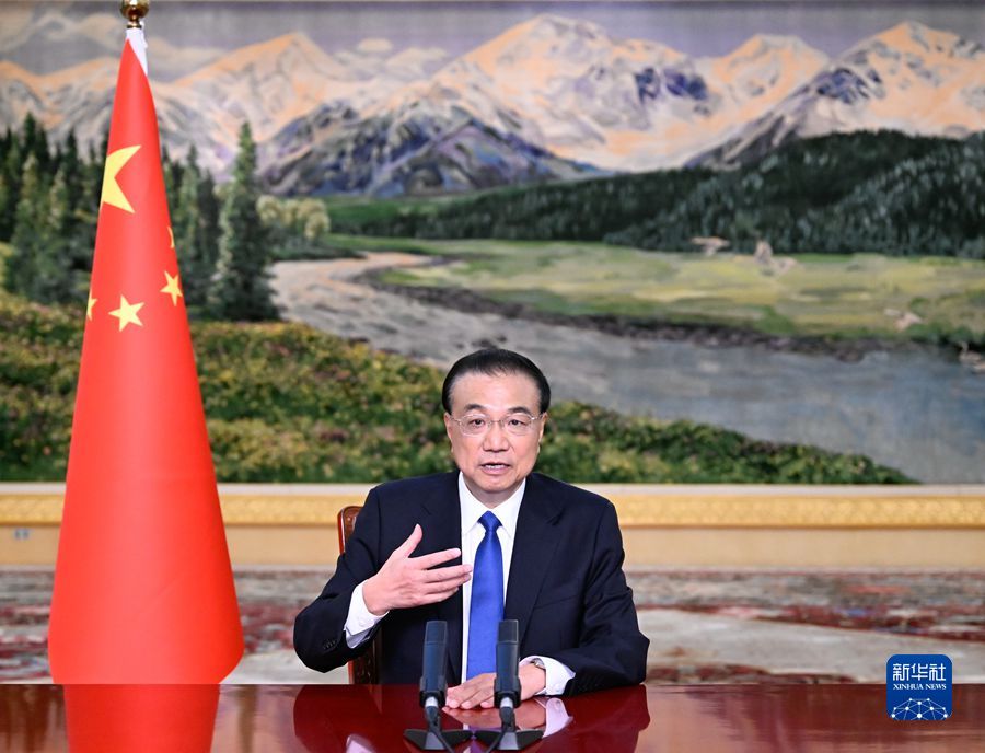 12月12日,国务院总理李克强以视频方式在第三轮中韩企业家和前高官对话会上发表致辞。新华社记者 申宏 摄
